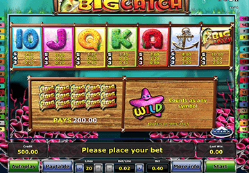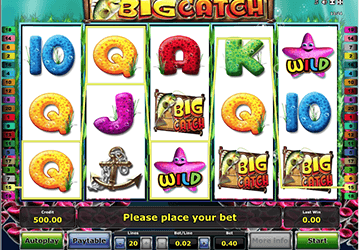Компания Новоматик приглашает на морскую рыбалку. Вас ждет увлекательное путешествие по морю на рыболовном траулере. Постарайтесь поймать самую крупную рыбу – она наиболее ценная. Во время раундов на пяти барабанах слота Большой Улов будут появляться различные картинки. Вы сможете составить выигрышные комбинации из якоря, логотипа игры, буквенных обозначений игральных карт, морской звезды. У каждого символа своя цена. Самым ценным стал логотип автомата – за него вы получите 15 000 монет. Дикий символ аппарата – звезда. Производитель предусмотрел также наличие бонусной игры.