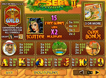 Заходите наигровой сайт казино Вулкан. Здесь всегда большое количество пользователей, и это не удивительно. Администрация приготовила для постоянных посетителей много приятных сюрпризов. Вас ждут внятная бонусная политика, призы и подарки. Крутить барабаны симулятора Сокровища Пустыни 2 будет не только выгодно и азартно, но и очень интересно. Однако перед игрой рекомендуем изучить таблицу выплат. Сложностей не предвидится, так как слот полностью переведен на русский язык, а интерфейс интуитивно понятен.