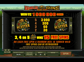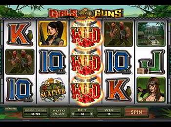 Логотип автомата Девушки С Пушками – Жара В Джунглях может вступать в игру вместо любого другого символа (кроме гранаты Scatter). Для тех, кто решил крутить барабаны сразу станет ясна особая выгода от этих символов – ведь они выпадают непрерывными сериями. Более того, игра добавляет на 3-м барабане дикий символ, который будет при появлении автоматически расширяться на все 3 клетки в высоту.