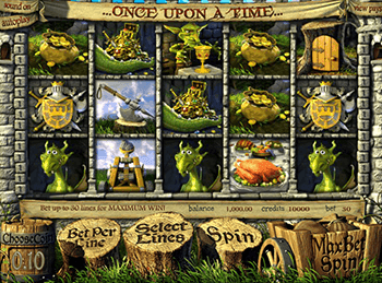 Симулятор оборудован пятью барабанами и 30 линиями выплат. Геймеры по своему желанию активируют различное количество строк и собирают выигрышные комбинации из одинаковых символов, расположенных на активной линии. При желании получить реальный выигрыш, надо играть на настоящие деньги. В автомате Once Upon A Time диапазон ставок достаточно широк: от 1 до 5 кредитов на линию. При этом стоимость фишки составляет 0,02-1 доллар.